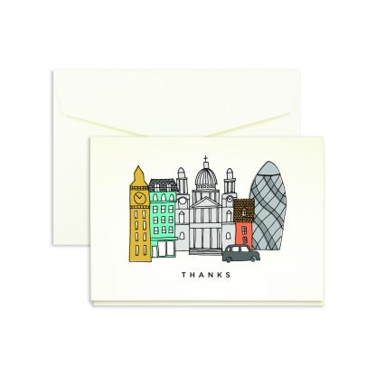 3.5″ x 4.875″ folded thank you note. A colorful and cartoonist collection of London-themed buildings that captures all of the beautiful sights of the city we know and love.
