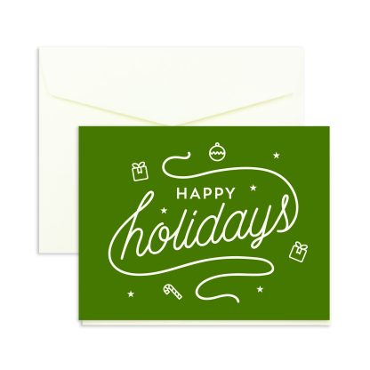 4.25″ x 5.5″ folded holiday note. 25 per pack. Send holiday greetings with the perfect card!